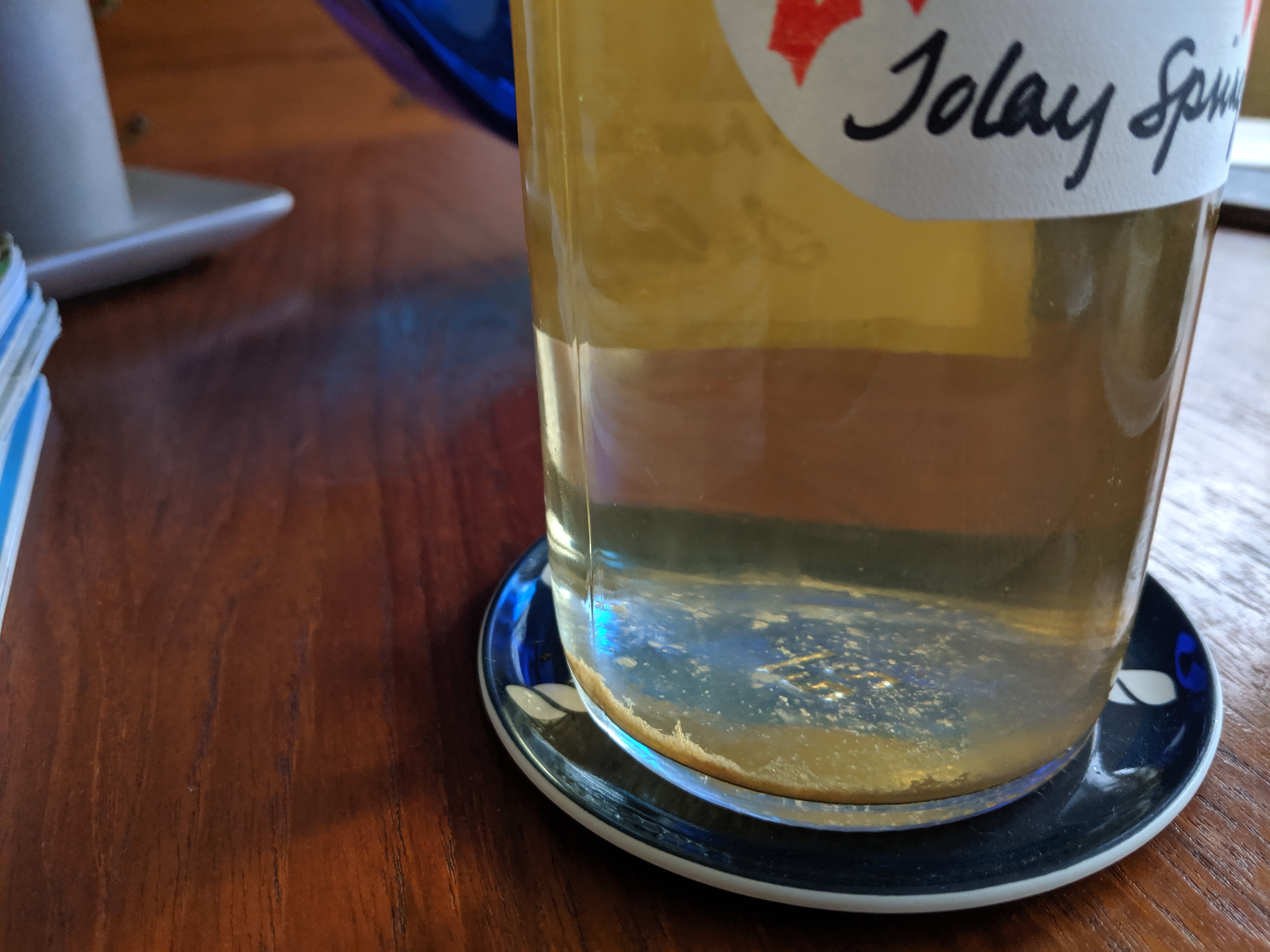 After a few more months in the bottle, I opened one up last night. At the very least, there’s a good amount of sediment in the bottles now. If I were to do this again, I’d rack another time or two after the SO2 addition just to make sure that everything had settled out.
